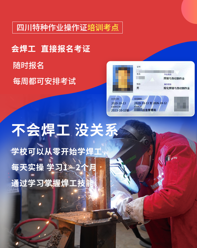 平焊、角焊、立角焊、板对板立焊(单面焊双面成形)、多层多道横焊(单面焊双面成形)、仰焊板对板(学习时间25天)